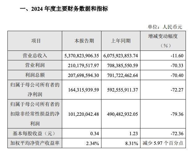 南都湾财社记者注意到,这已是公司净利润急速下滑的第二年。财务数据显示,公司2023年实现营收60.76亿元,同比下滑4.45%,同期归属于上市公司股东的净利润为5.93亿元,同比下滑38.97%,扣非后净利润为4.9亿元,更是同比下滑42.44%。