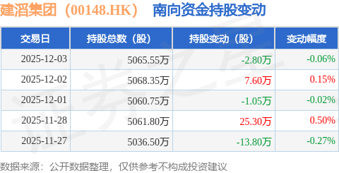 资本分配10倍杠杆 建滔集团(00148.HK):12月3日南向资金减持2.8万股